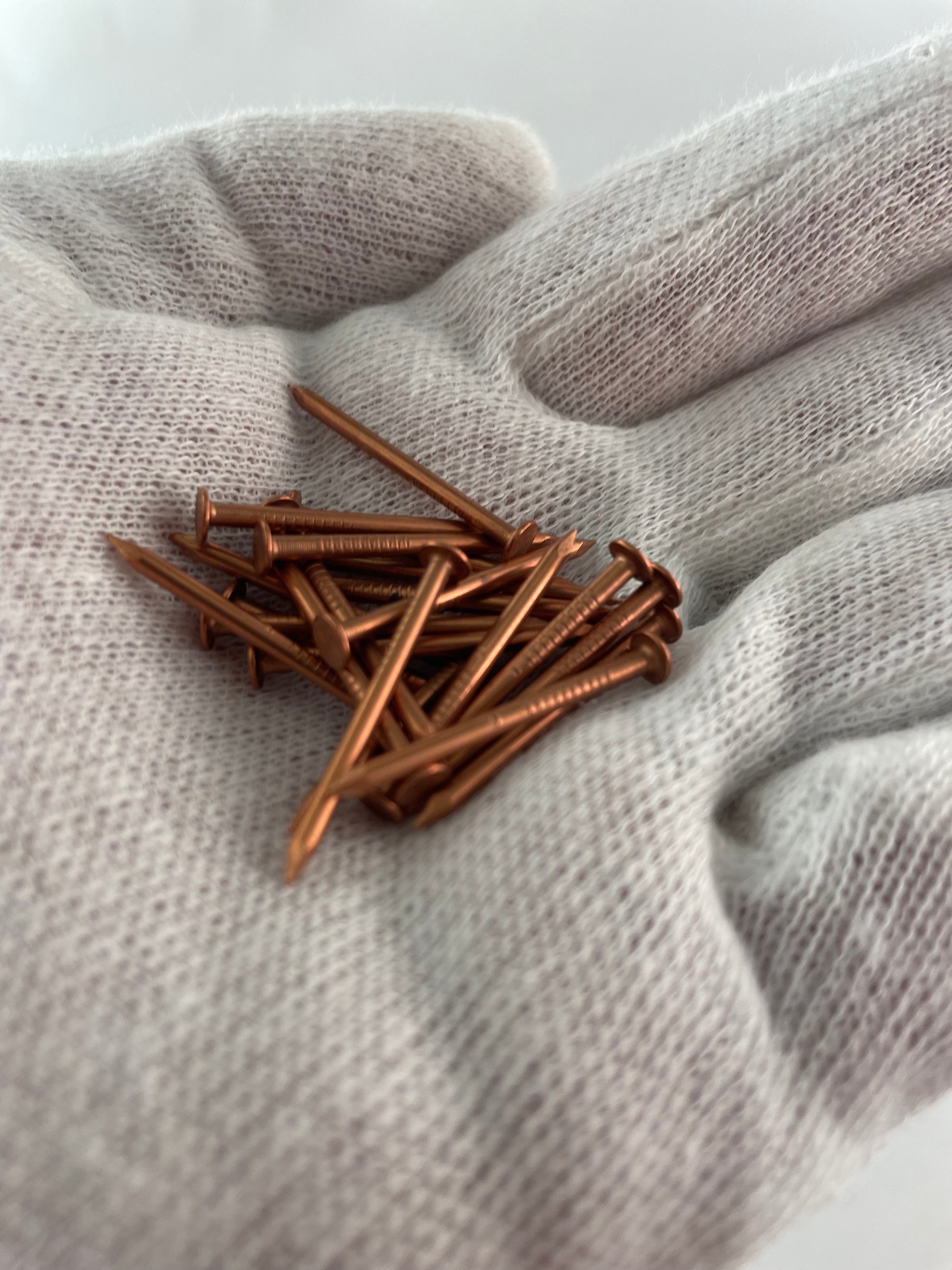 26 2mm solid copper nails. Trim to desired length and combine with a copper railing to make your own railing. Soldering required.