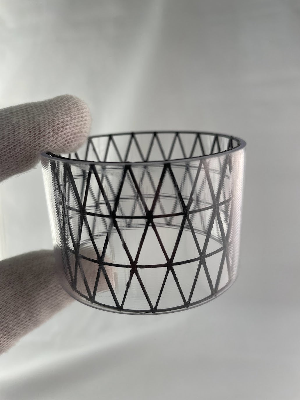 The lighthouse window is made of durable polycarbonate with machine finished ends and includes a 3D printed frame. It fits snugly into the lightroom base o-ring seal and is capped by a 3D printed dome, available copper plated or unfinished.